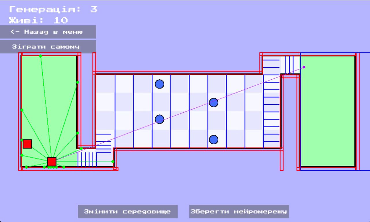В даній грі, нейромережа має точно такій же зір як і в грі Sans battle, тобто випускає промені, які зіштовхуються з обʼєктами навколо. Але якщо в попередніх іграх, нейромережа мала за завдання лише виживати, то тепер вона має ціль: дібратися до другої зеленої зони виживаючи.