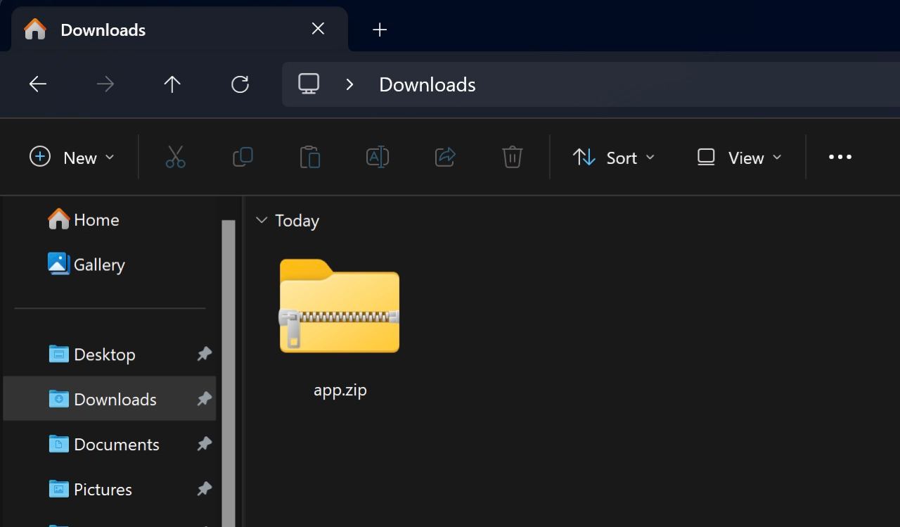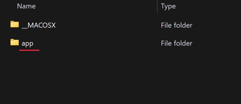 Після того, як ви натиснули на кнопку "Завантажити", на ваш компʼютер завантажиться архів з назвою app (app.zip).